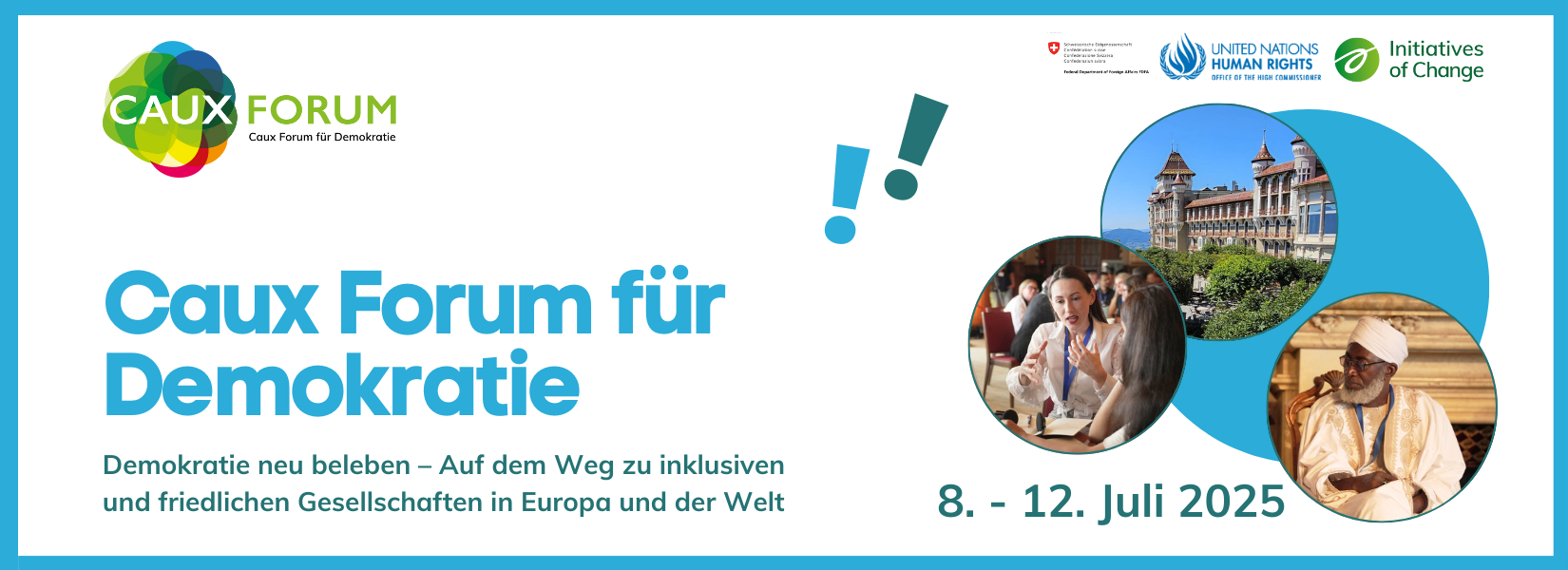 Das Forum 2025 wird von Caux Initiativen der Veränderung in Zusammenarbeit mit Initiativen der Veränderung International, dem Eidgenössischen Departement für auswärtige Angelegenheiten (EDA) und OHCHR sowie weiteren Partnerorganisationen organisiert (die Liste wird in den kommenden Wochen weiter aktualisiert).