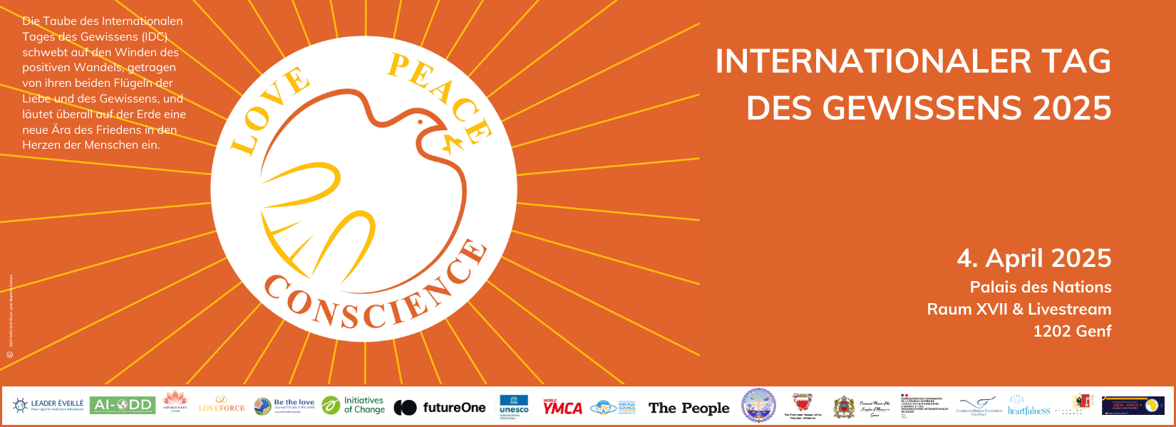 Nach dem Erfolg des Internationalen Tag des Gewissens im Jahr 2024 freuen wir uns, Sie einzuladen, mit uns in Zusammenarbeit mit BeTheLove, AI-ODD und verschiedenen Partnerorganisationen am 4. April 2025 (10:00 - 17:30 Uhr) im UN-Hauptquartier im Palais des Nations in Genf zu begehen.