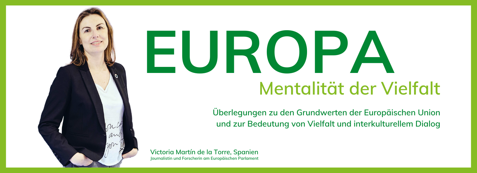 Die spanische Journalistin Victoria Martín de la Torre interessiert sich leidenschaftlich für Europa, Vielfalt und interreligiöse Beziehungen. Nach 15 Jahren als Pressesprecherin der Fraktion der sozialistischen und demokratischen Parteien im Europäischen Parlament und zwei Büchern arbeitet sie nun beim Forschungsdienst des Europäischen Parlaments, der den Abgeordneten des Europäischen Parlaments wissenschaftliche Studien zur Verfügung stellt, und schliesst derzeit eine Doktorarbeit darüber ab, was die Pioniere der Europäischen Union in der Gründungszeit nach dem Zweiten Weltkrieg dem Europa von Heute lehren könnten.