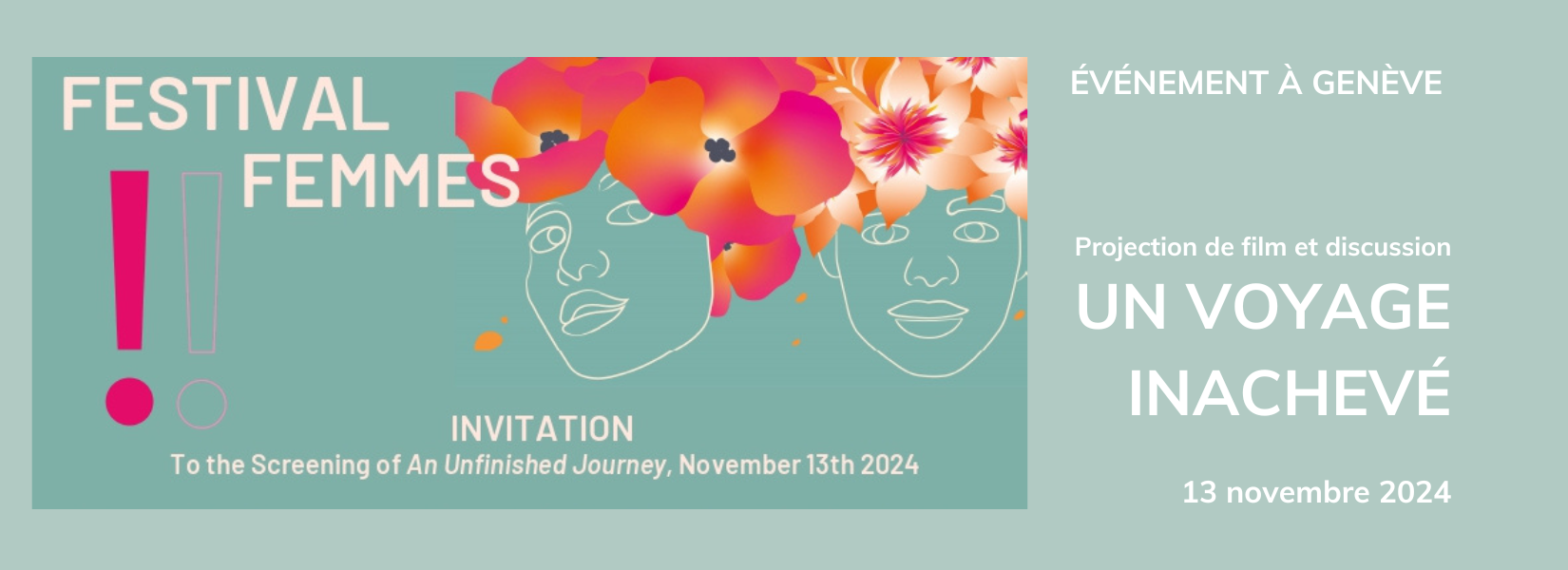 L'événement consiste en une projection du film « Un voyage inachevé », suivie d'une discussion avec des intervenant.e.s sur la situation des femmes afghanes après la prise de pouvoir par les Talibans en 2021. L'objectif est de sensibiliser, d'échanger des points de vue et d'identifier des moyens de travailler ensemble pour soutenir les femmes afghanes et maintenir l'attention mondiale sur cette crise.