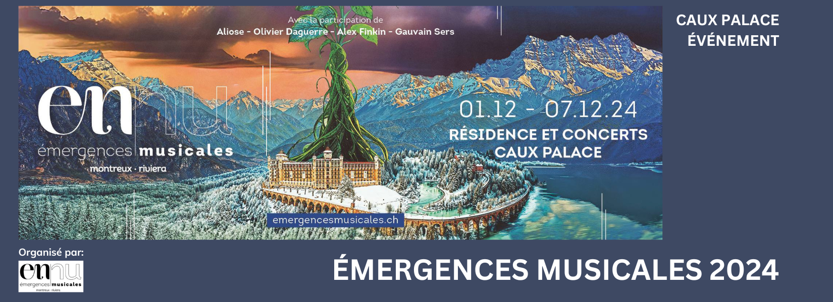 Les Émergences musicales 2024 auront lieu au Caux Palace, situé à Caux, l’un des villages composant Montreux, dans le canton de Vaud en Suisse.