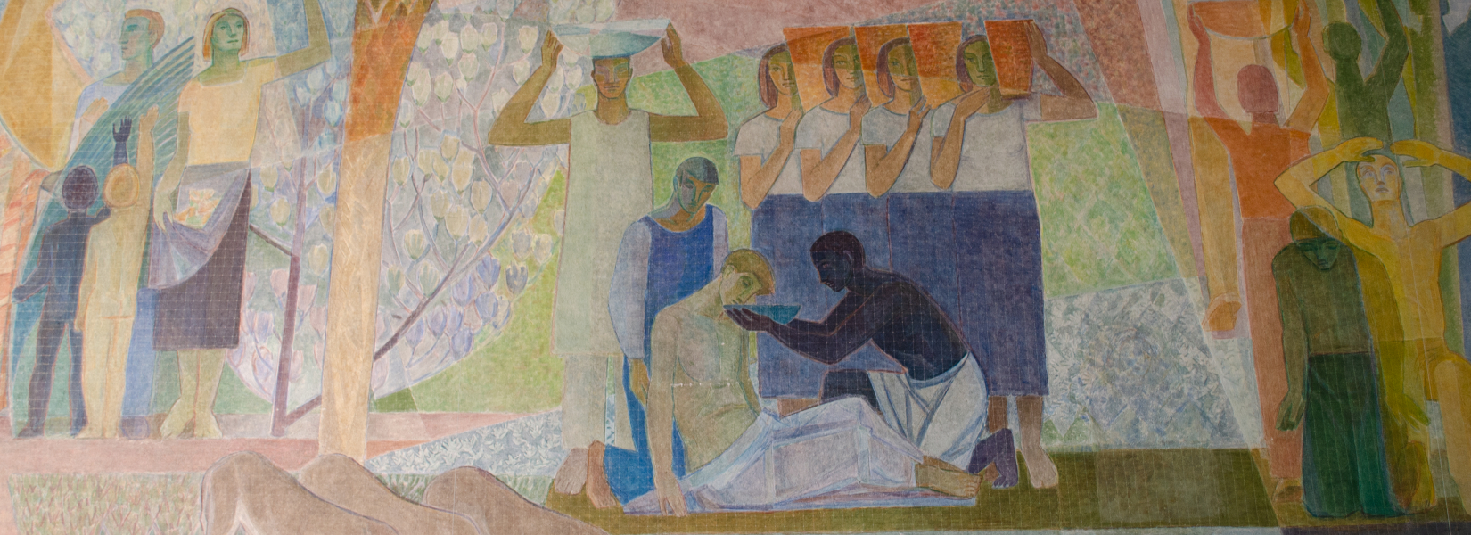 Cette année, les célébrations des 75 ans de rencontres au centre de conférences d'Initiatives et Changement à Caux ont été l'occasion de regarder de plus près ce magnifique chef-d'œuvre, sa symbolique et ce qui nous touche, lui qui a été le témoin de tant de dîners et de discussions profondes au fil des ans.