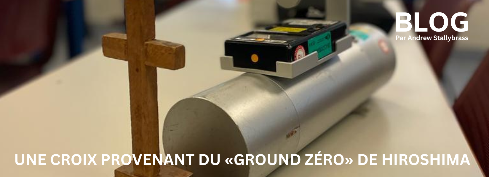 En septembre 2023, à l'occasion d'un événement majeur au Caux Palace, nous avons organisé une petite exposition temporaire de documents et d'objets dans le Salon Belle Epoque, incluant la croix d'Hiroshima. Plusieurs personnes ont commenté, et certaines se sont même demandé.e.s si elle était dangereuse - radioactive.