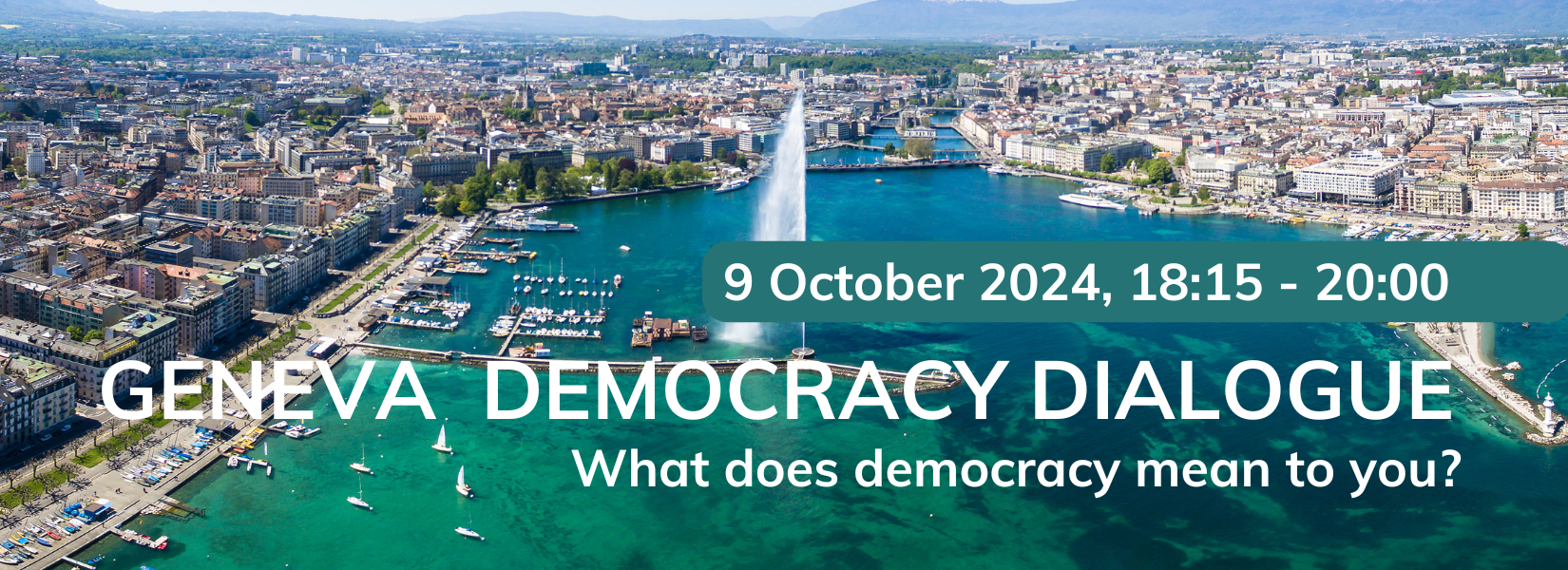 The second Geneva Democracy Dialogue on 9 October 2024 (18:15 - 20:00 CEST) will explore the question: What does democracy mean to you?
