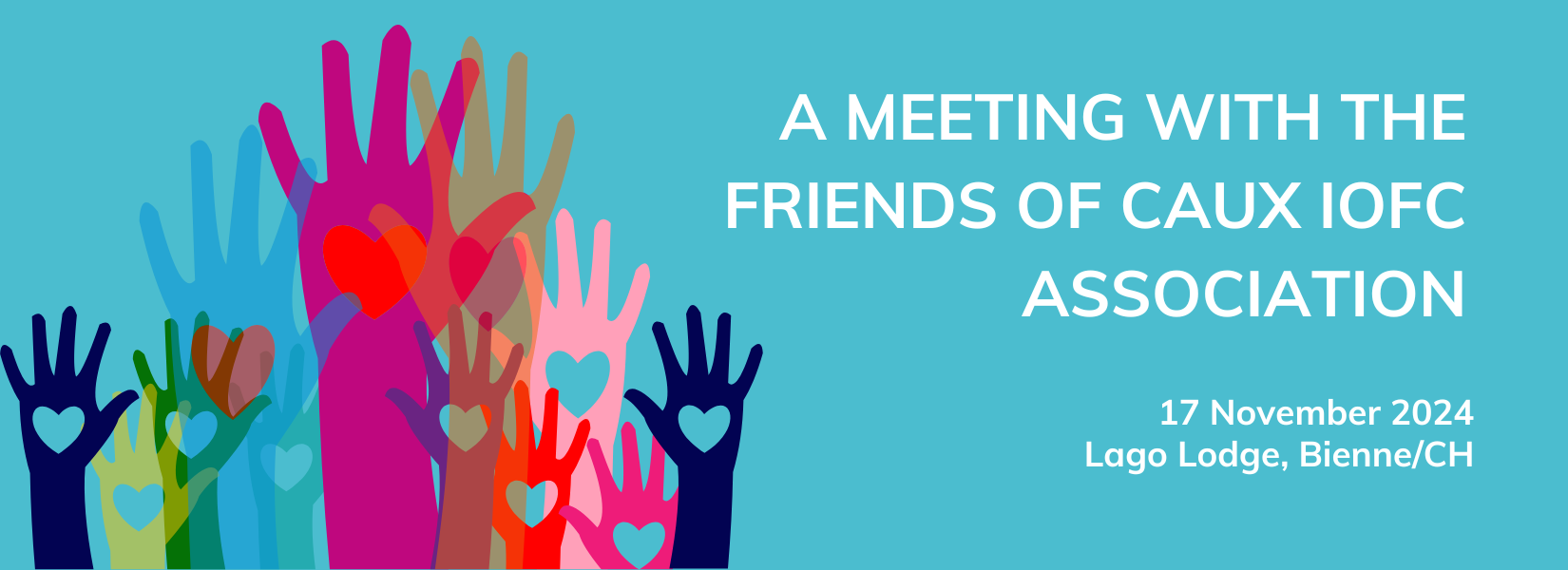 The Association Friends of Caux IofC invites you to a meeting on 17 November at Lago Lodge, Bienne/CH. This weekend is a time to get together, exchange ideas and prepare for a weekend of the Initiatives of Change network in Switzerland in spring 2025 at Caux. Sign up - we look forward to spending time with you!