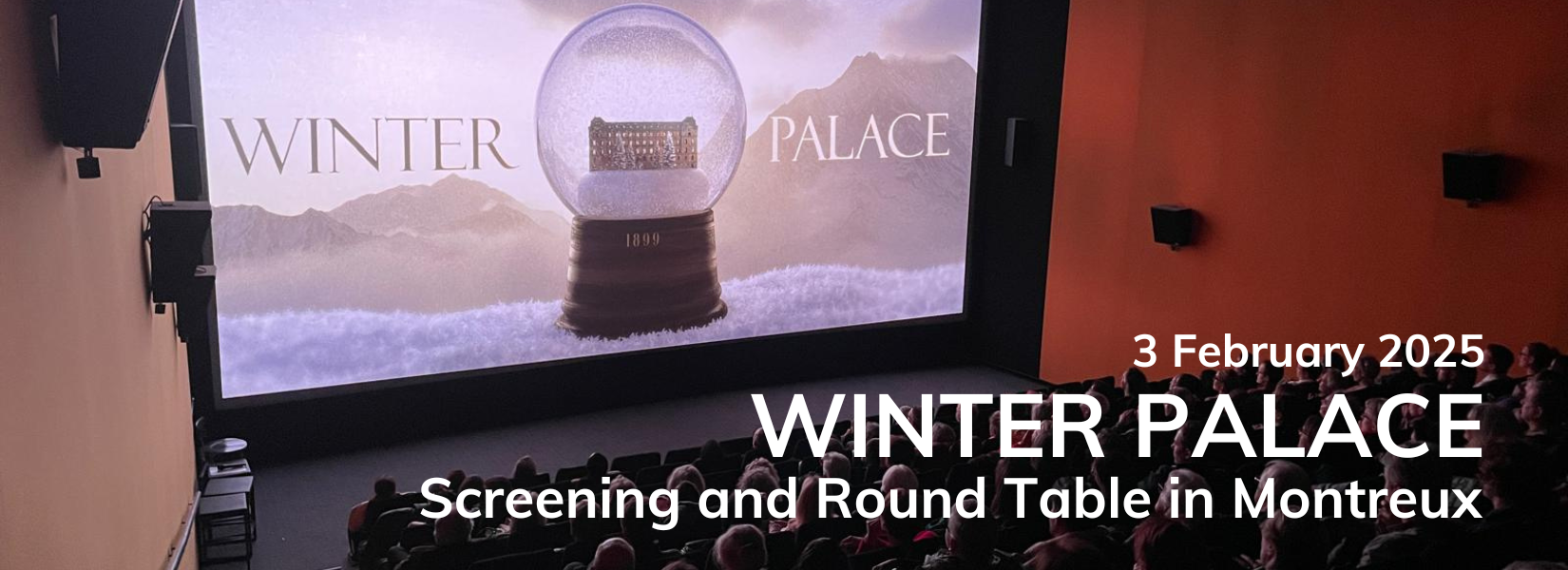 The evening, attended by over 200 people, featured a screening of the RTS series "Winter Palace" including scenes filmed at the Caux Palace, and an episode of the documentary series "The Historians," followed by an engaging round table discussion moderated by Anne-Catherine Sutermeister, Head of Swiss Engagement at Caux Initiatives of Change, with Thierry Romanens, actor in the series, Marion Schramm and Evelyne Lüthi-Graf.