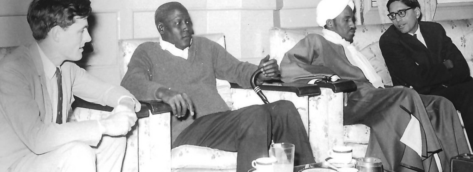 - Photo top: (left to right) the Marquis of Graham, Buth Diu, Ahmed el Mahdi and Rajmohan Gandhi in Khartoum in 1966, credit: Peter Everington
