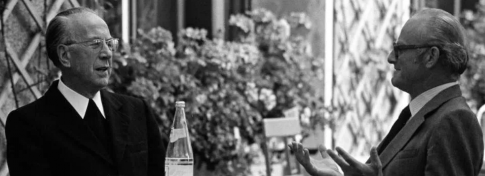 (left) American nuclear physicist Victor Weiskopf and (centre) Eduard Kellenberger, the father of microbiology in Switzerland