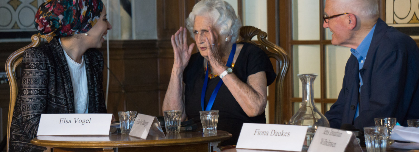 On Tuesday, 19 July 2016, a public event kicked off the conference Adressing Europe's Unfinished Business on the theme ‘Passing the baton’, with four of those who were young when they participated in Caux conferences at that time. They were hosted by two of today’s young people, Noucayba Soltani a post-graduate student from France, and Jonathan Nelson, a teacher from Norway. Noucayba said, ‘Each of us has a responsibility to rethink Europe. Everyone can make their contribution. If we look around the world, nothing is working. There is war, refugees, and no one knows what to do. But Europe has faced great difficulties and it overcame them. If we don’t learn the lessons of the past, we are condemned to repeat them.’