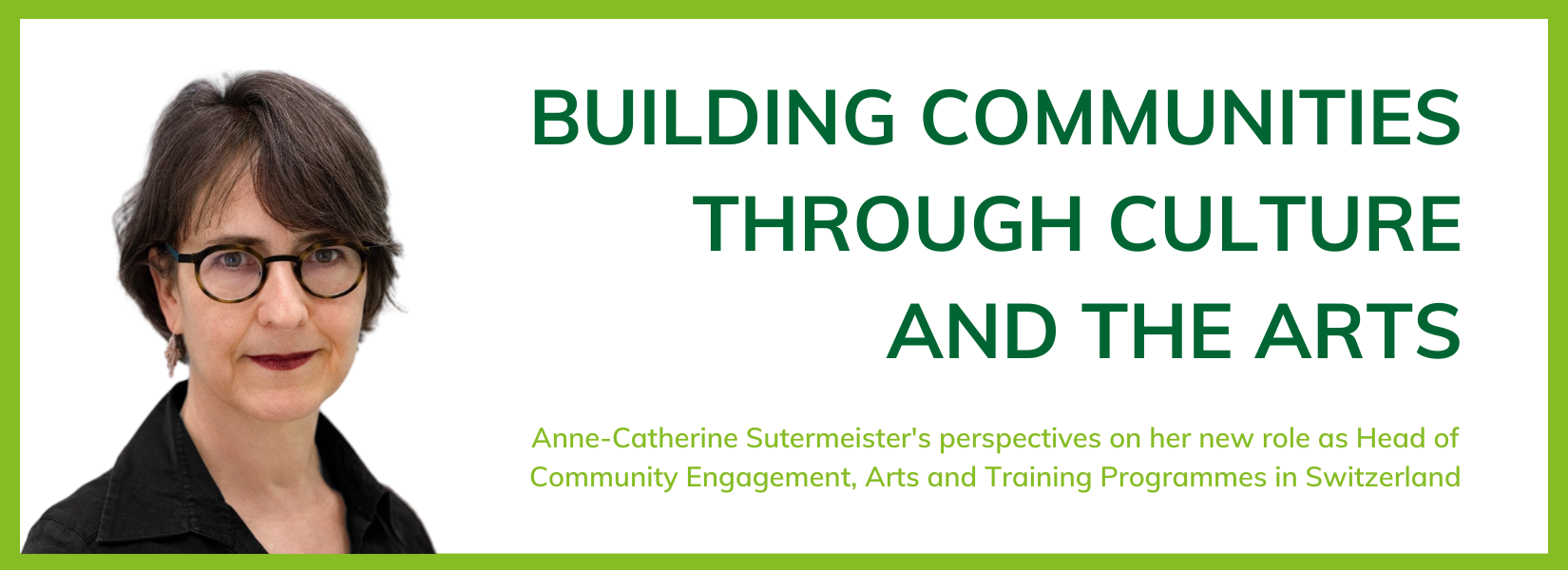 We are excited to announce that Anne-Catherine Sutermeister has joined the team as Head of Community Engagement, Arts & Training Programmes for Switzerland.